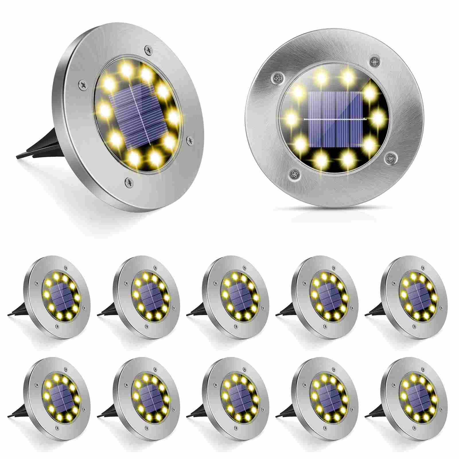 SUNNEST 地中埋込型ライト ガーデンライト ソーラーライト 屋外照明 IP68防水 埋め込み式 ソーラー 自動点灯/消灯 光センサー 太陽光パネル充電 高輝度 LED 庭/玄関先/芝生/車場/歩道 設置簡単 防災対策 防犯ライト 置き型 10led 電球色 (12個セット)752259451125